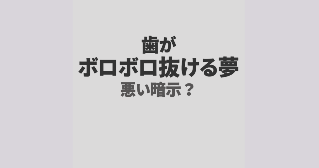 ※この記事にはアフィリエイトリンクが含まれています。 歯がボロボロと抜け落ちる夢を見て、思わず目が覚めてしまった――そんな経験はありませんか。 とくに、血が出るほどリアルな夢だった場合、「悪い意味があるのでは」「何か起きる前触れでは」と強い不... -