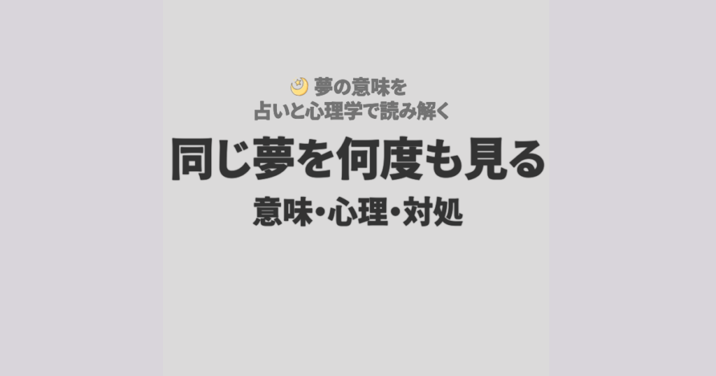 ※この記事にはアフィリエイトリンクが含まれています。 結論:同じ夢を何度も見るのは「未解決の感情」や「繰り返すストレス」があるサインです。 「またあの夢だ……」 起きた瞬間、妙なデジャヴと漠然とした不安に襲われたことはありませんか? 同じ場所、... -