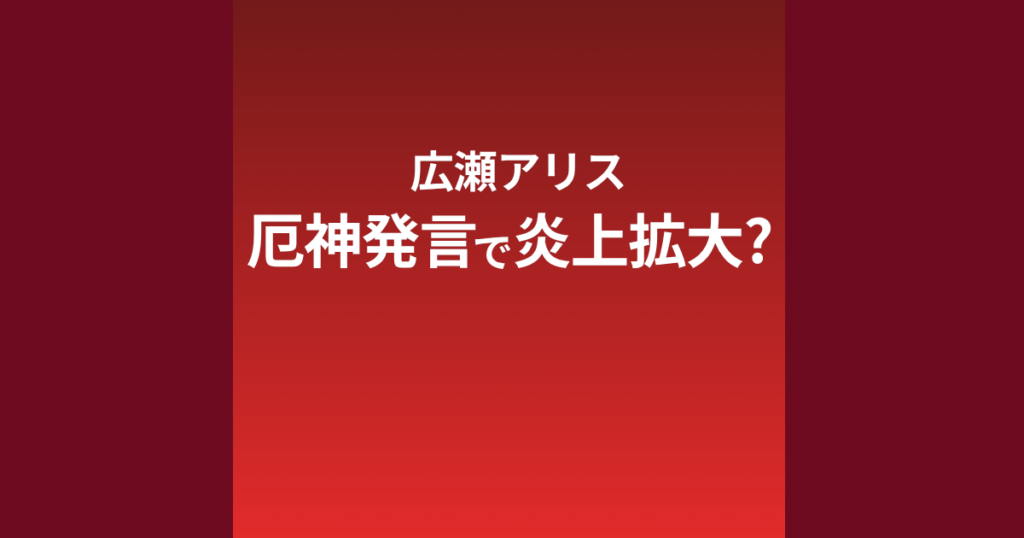 広瀬アリスさんの発言が、SNSで議論を呼んでいます。 「推しの結婚」をめぐる投稿は、なぜここまで炎上したのでしょうか。 広瀬アリスの厄神発言とは何があったのか ねぇ待って!この辛そうなソースつけても食べれる!っていう画。 pic.twitter.com/cKNANO... -
